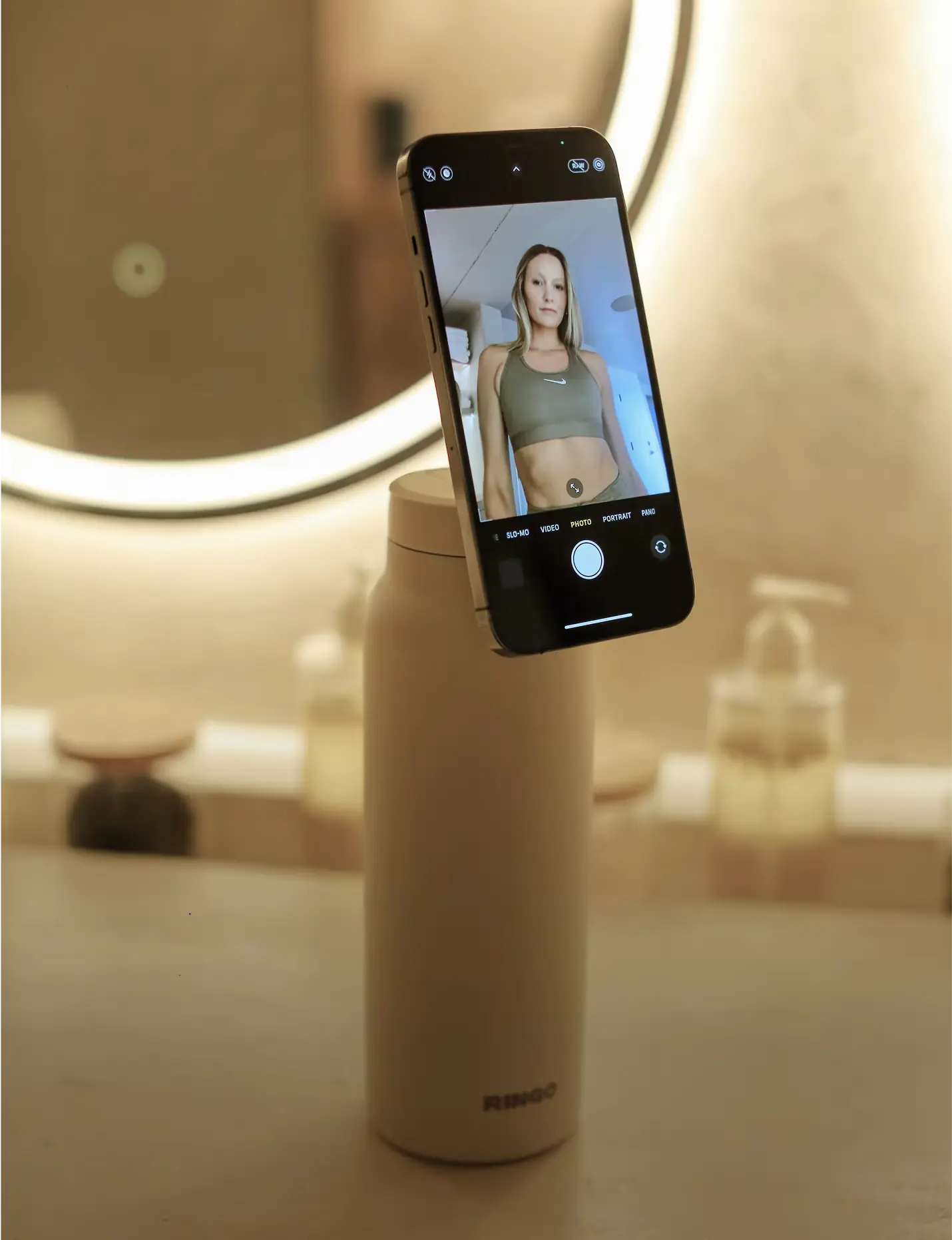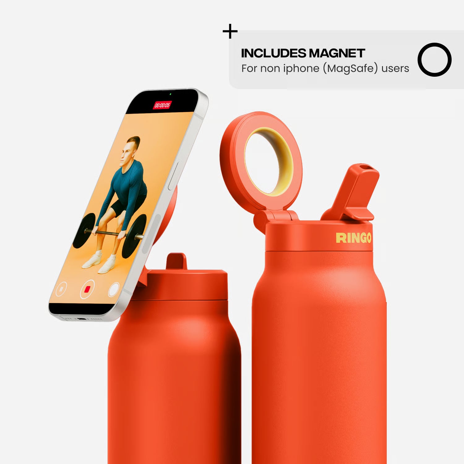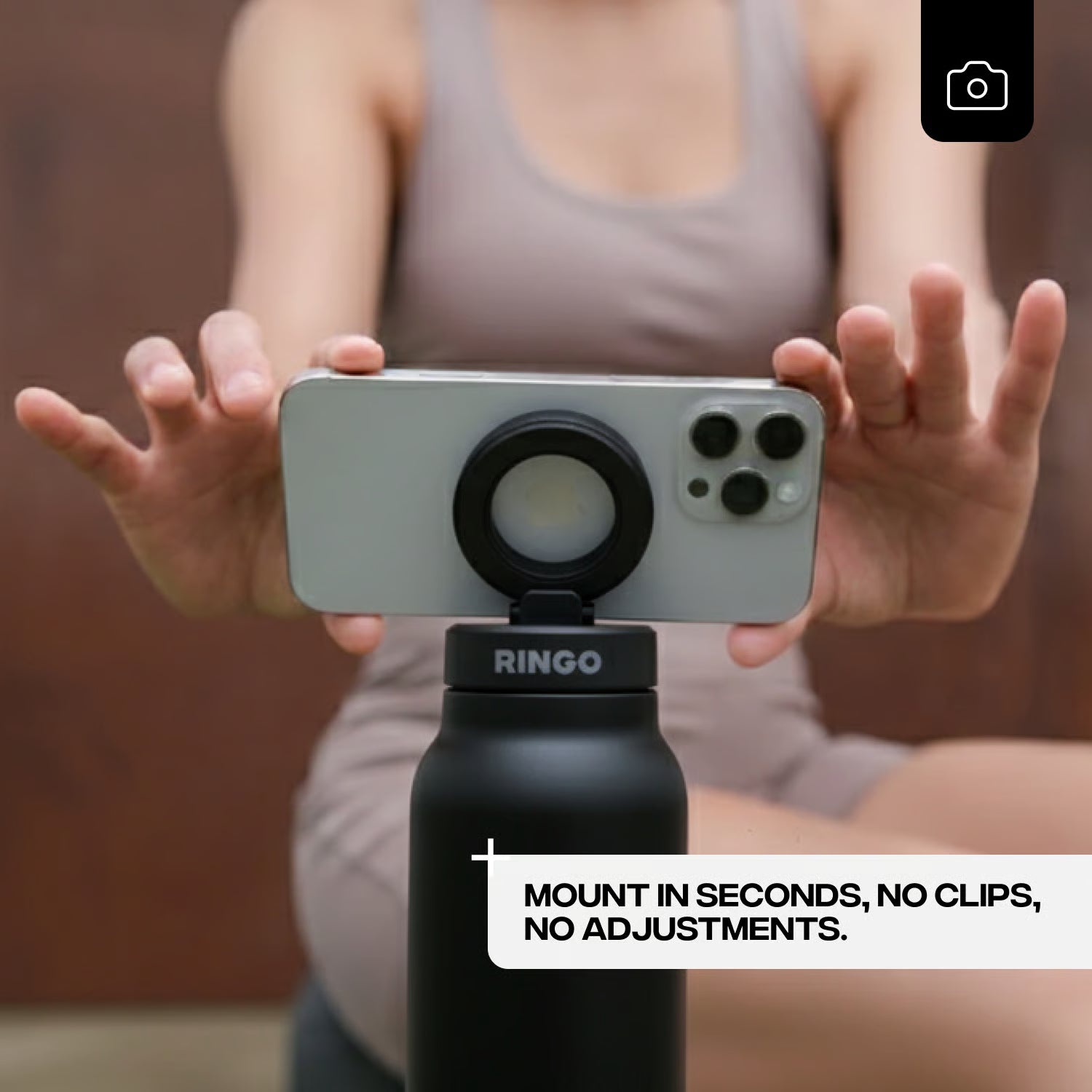 Ringo PRO isn’t just a water bottle—it’s a game-changer. With a built-in MagSafe-compatible mount, it securely holds your phone at the perfect angle for workouts, video calls, or content creation. No more awkward balancing acts—just seamless convenience.